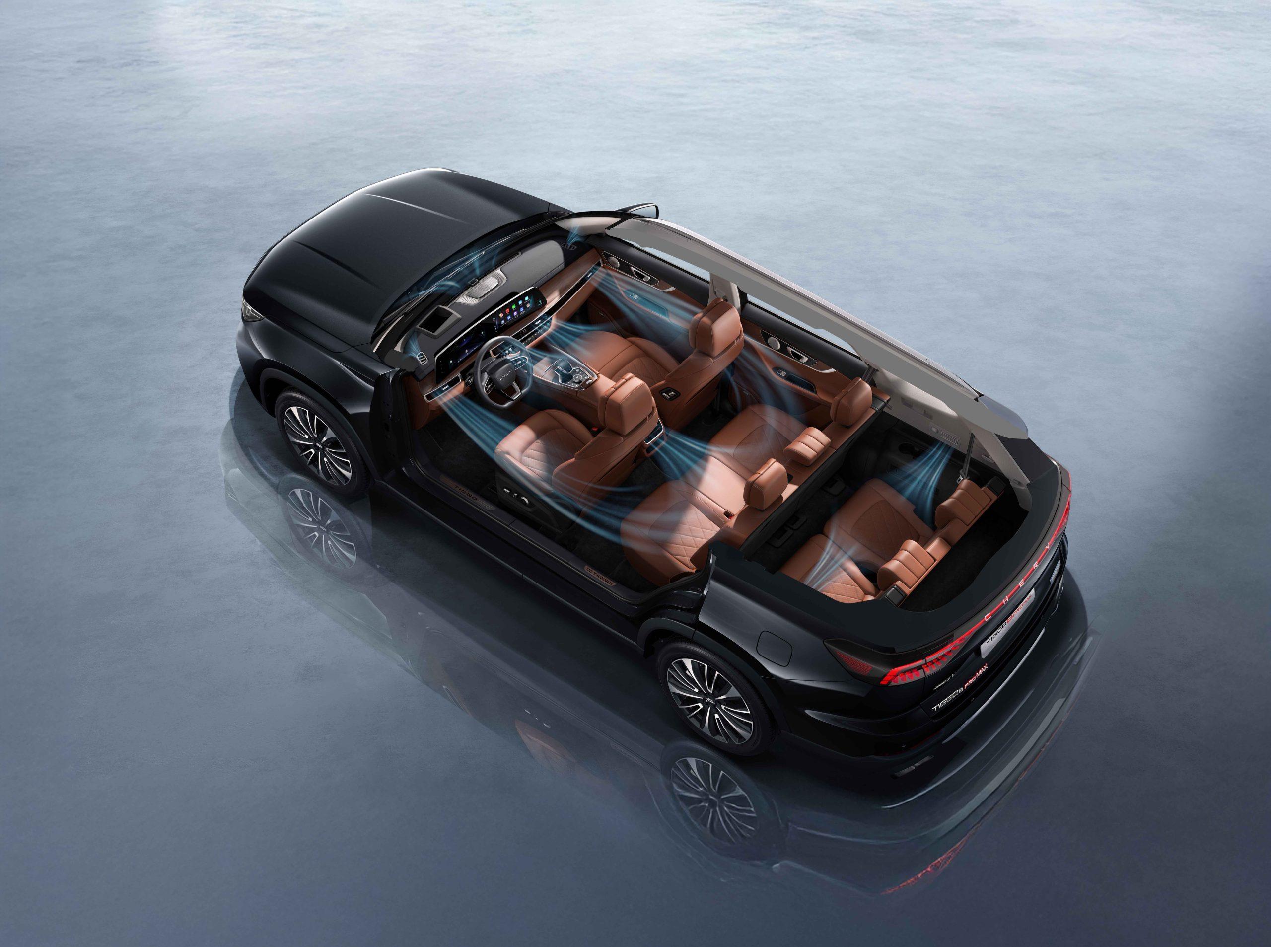 El TIGGO 8 Pro ofrece un interior amplio y confortable; cuenta con 7 plazas, tapizado interior en cuero ecológico, techo panorámico, pantallas LED de 12,3” con conectividad inalámbrica, cámara 360°, sistema de audio premium SONY, asientos eléctricos delanteros y climatización tri-zona, para una experiencia premium.